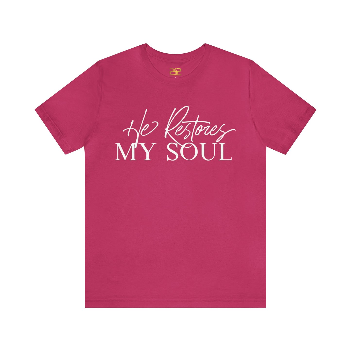HE RESTORES MY SOUL Unisex Jersey Short Sleeve Tee